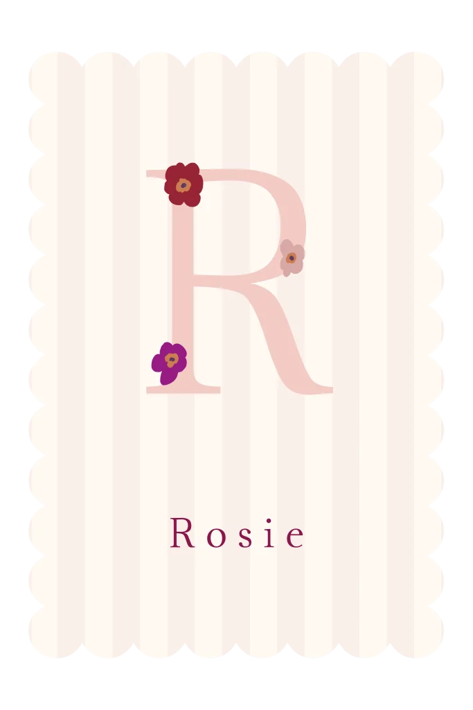 Op zoek naar een uniek geboortekaartje voor je kleintje? Dan is de stansvormige golvende randjes kaart met de eerste letter van de naam van je kindje. In onze collectie zijn alle letters van het alfabet te vinden in verschillende designs.