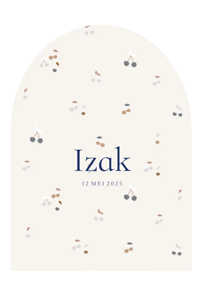 Wanneer je op zoek bent naar een origineel geboortekaartje voor je zoon, is deze stansvormige boog kaart met kersjes een perfecte keuze.
