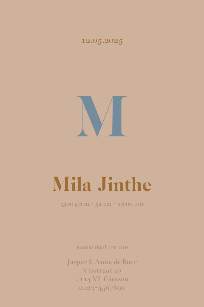 Een mooi geboortekaartje met stans cirkel en een bloemetjes achtergrond. Kleuren kunnen gewijzigd worden.