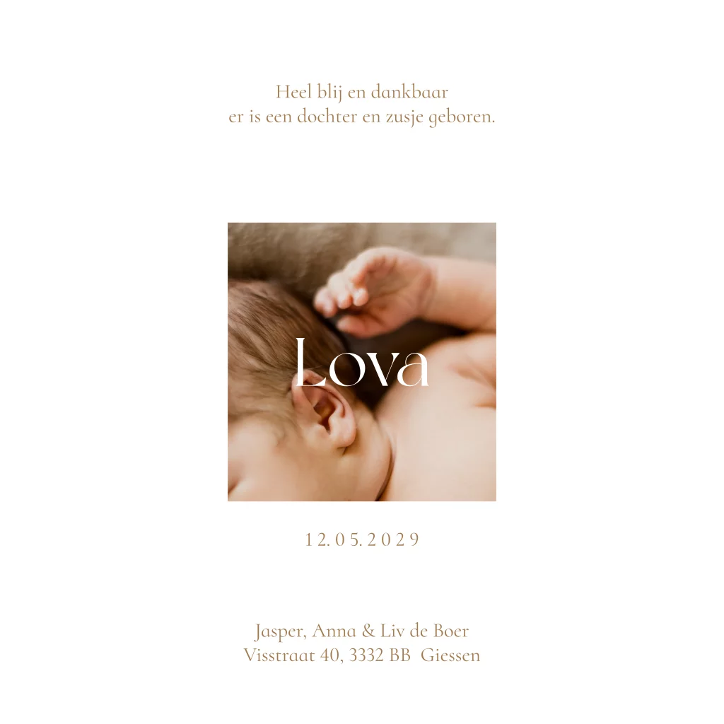 Een vrolijk geboortekaartje met een gestanste vierkant waardoor je een inkijkje krijgt naar binnen. Kleuren kunnen naar wens gewijzigd worden.
