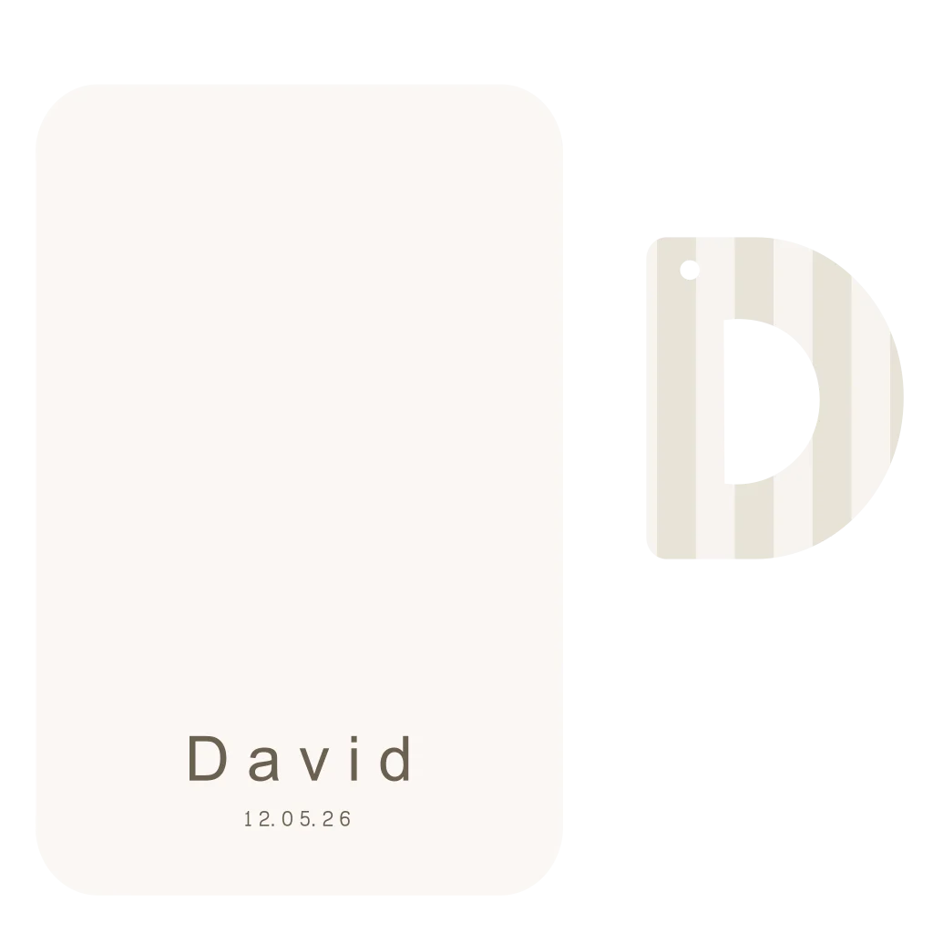 Een super leuk origineel geboortekaartje in met ronde hoeken en een label in de vorm van de letter D. Het label kan je bevestigen met een touwtje om de kaart. ( Het lint moet je er los bij bestellen ) Begint de naam van je kindje met een andere letter? Geen probleem, mail ons dan even en wij maken een labeltje met de letter van jullie kindje.