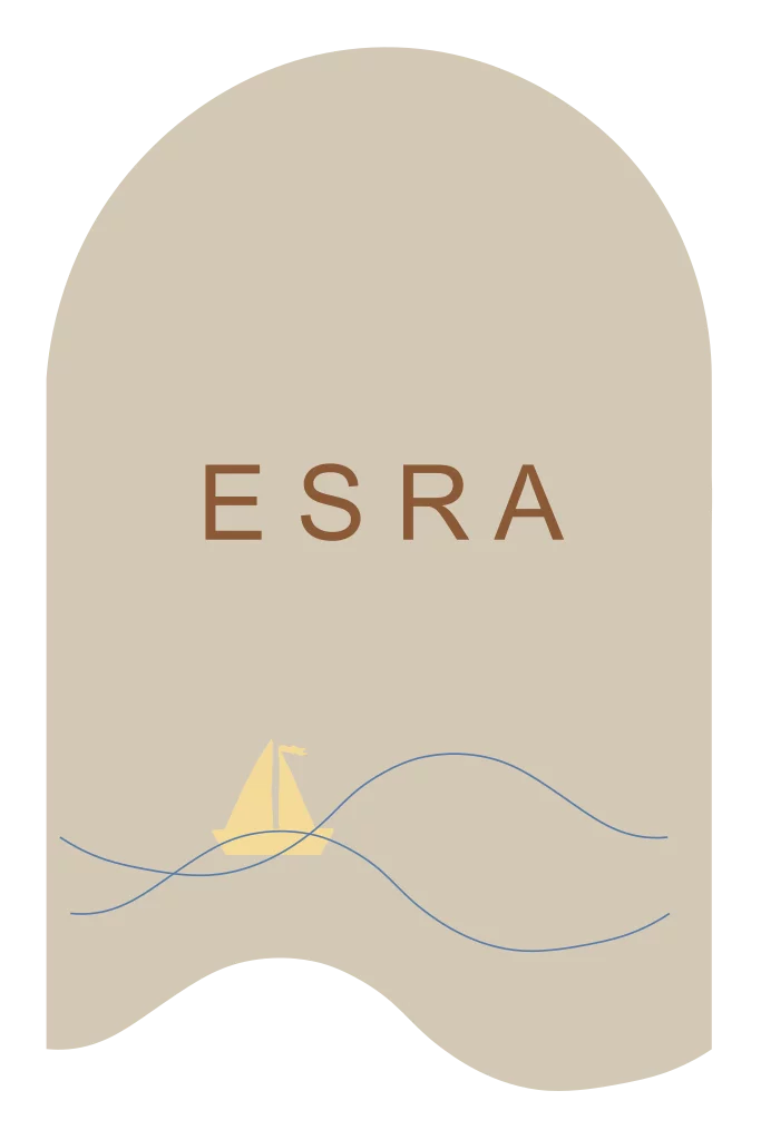 Een mooi uniek geboortekaartje met golfjes en een bootje, in een boog vorm en golfjes onderkant.