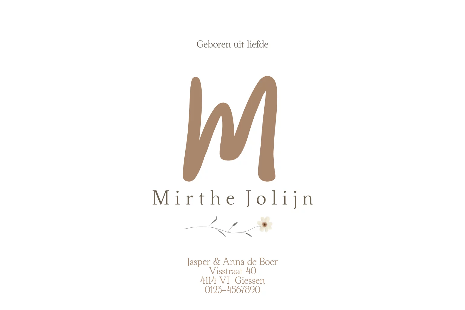 Een mooi geboortekaartje met de letter M eruit gestanst. Begint de naam van je kindje met een andere letter en wil je wel dit kaartje? mail ons dan even.