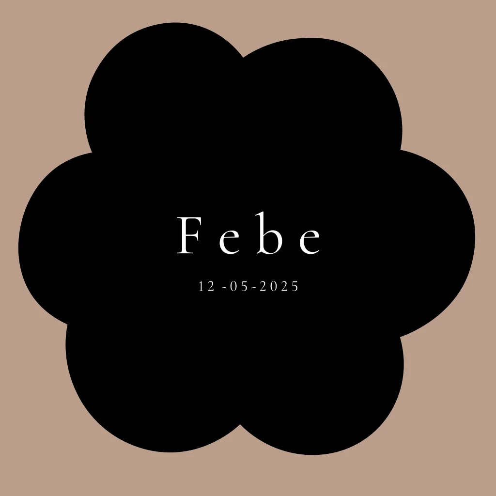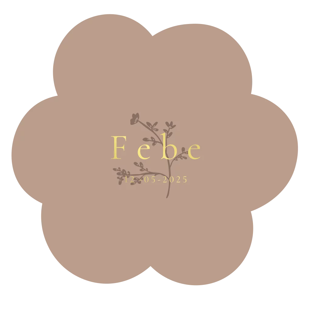 Een mooi geboortekaartje in een speciale vorm van een bloem met goudfolie. Kleuren en teksten kunnen gewijzigd worden.