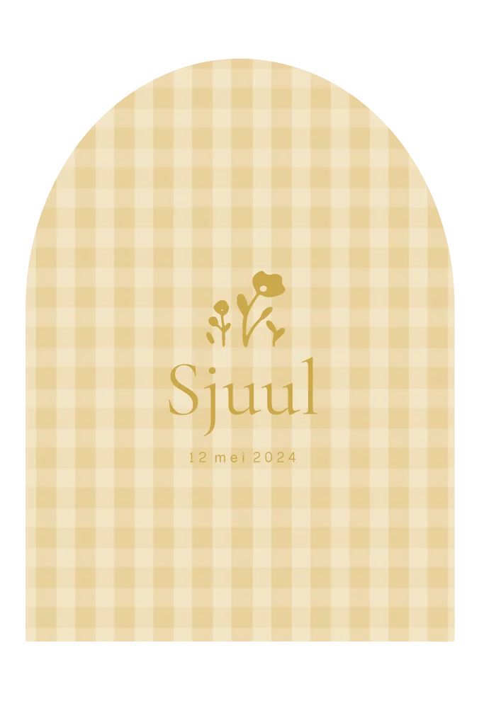 Een leuk stans geboortekaartje in een boog vorm met ruitjes patroon. Kleuren en tekst kan je wijzigen.