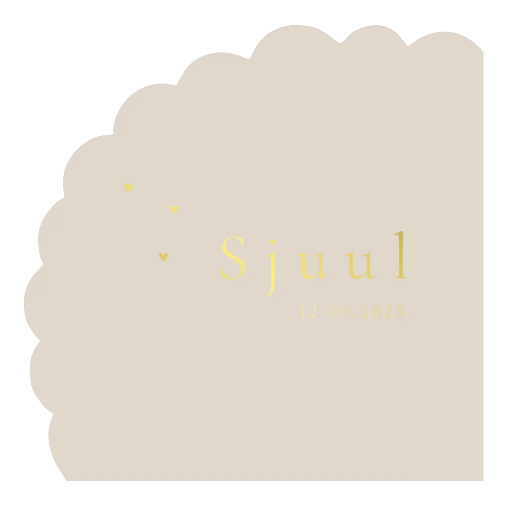 Een mooi uniek geboortekaartje in een halve bloem vorm met hartjes. Folie kan worden aangepast.