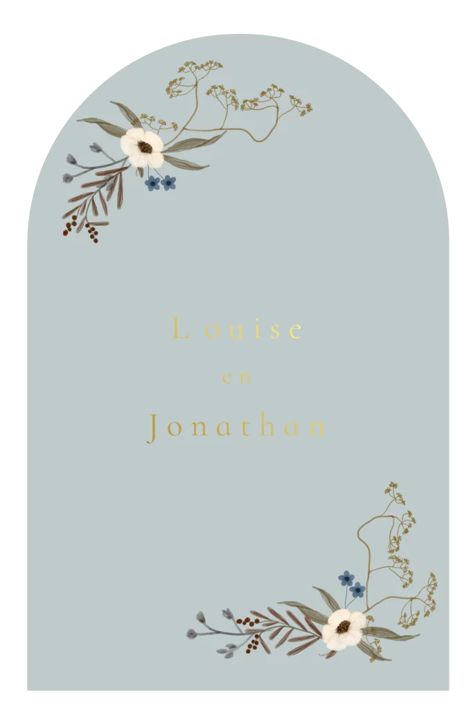 Onze trouwkaart "Trouwkaart bloemen boho boog" is een perfecte keuze voor stellen die op zoek zijn naar een betoverende en elegante uitnodiging met een boho bloemen thema in prachtige blauwtinten. De combinatie van rustgevende blauwe tinten en kleurrijke boho bloemen geeft deze kaart een unieke uitstraling die perfect past bij elke stijl bruiloft, of het nu traditioneel of modern is. De kaart is voorzien van prachtige foliedruk accenten in goudfolie.