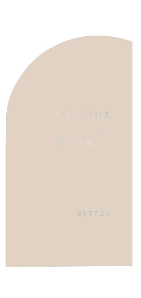 Een mooie trouwkaart in een boog vorm met zilverfolie. Kleuren en teksten kunnen gewijzigd worden.