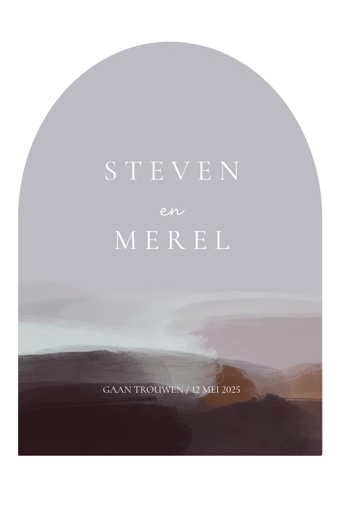 Een mooi trouwkaart gestanst in een boog. Tekst en kleuren kunnen gewijzigd worden.