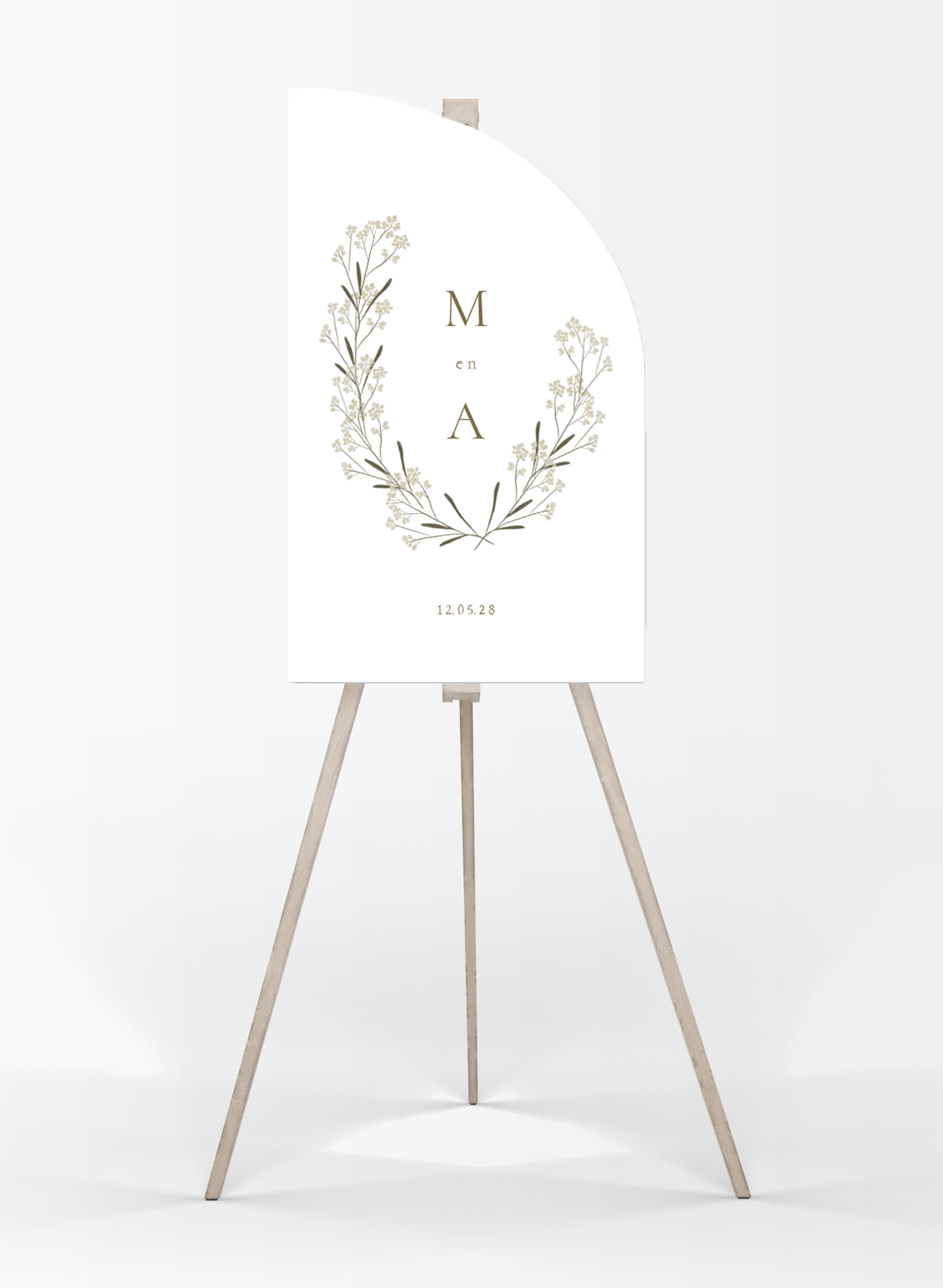 Een mooi bord om je gasten te verwelkomen op jullie feest, in de stijl van de trouwkaart.