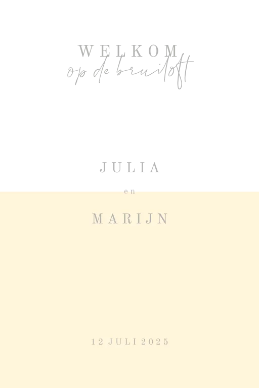 Een mooi welkomstbord om de gasten op je bruiloft te verwelkomen in de stijl van je trouwkaart.