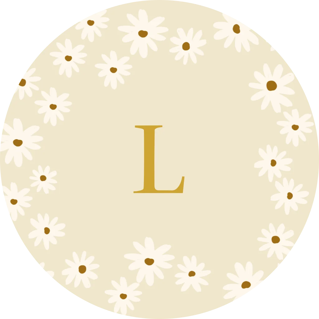 Een sluitzegel met madeliefjes, kleuren en tekst kunnen gewijzigd worden. De sticker heeft een diameter van 35mm.