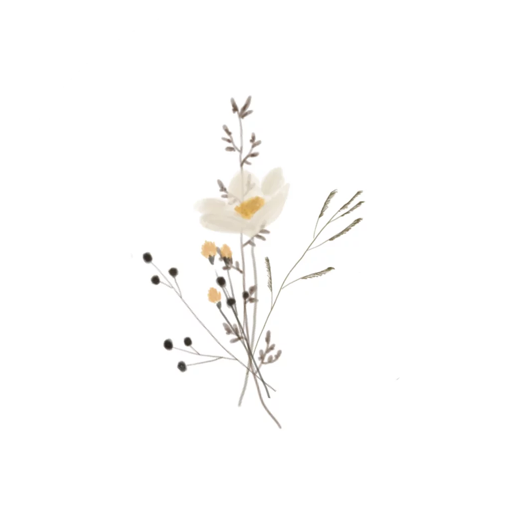 Een sluitzegel met een boeket van veldbloemen. De sluitzegel heeft een diameter van 35mm.