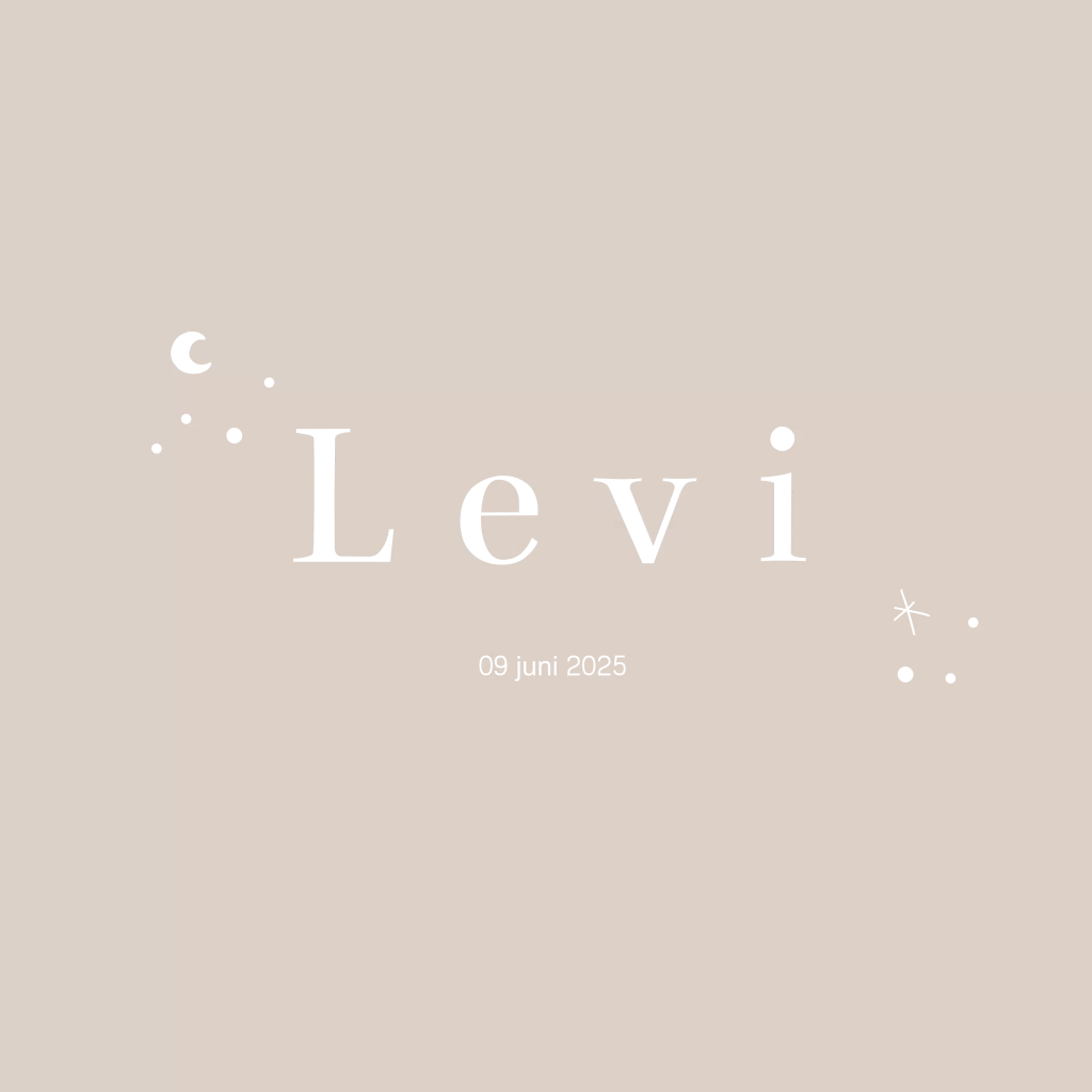 Een mooi trendy geboortekaartje met een maan en een ster. Met zwart folie. Kleuren kunnen gewijzigd worden.