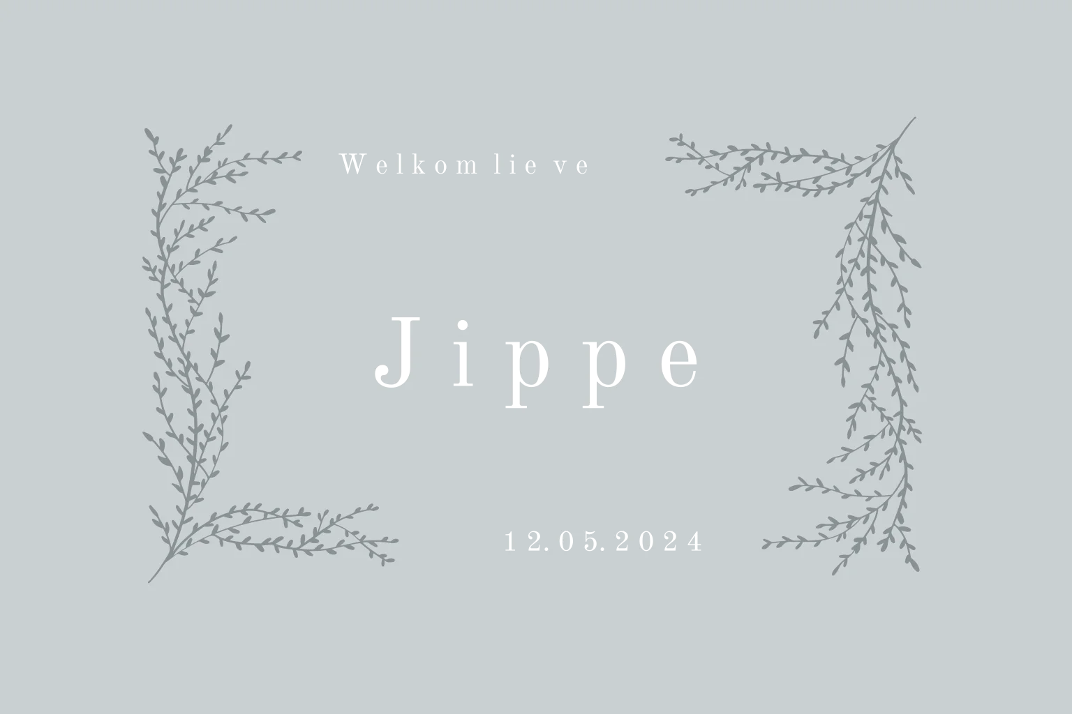 Een heel eenvoudig geboortekaartje met takjes en foliedruk