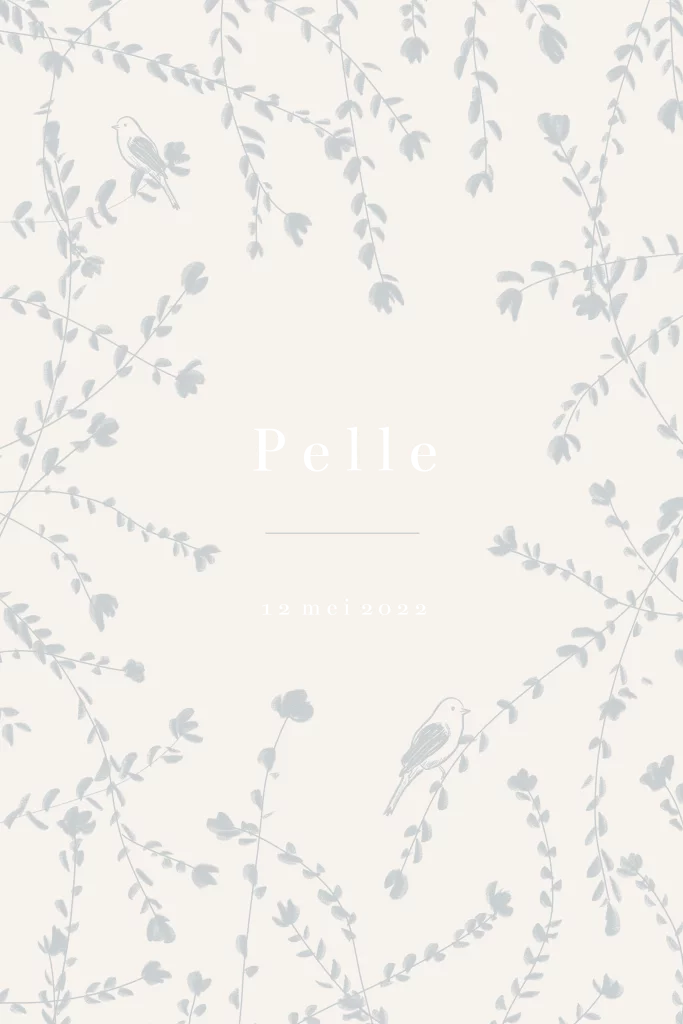 Een lief geboortekaartjes in natuur tinten met takjes en vogeltjes. Kleuren kunnen gewijzigd worden.
