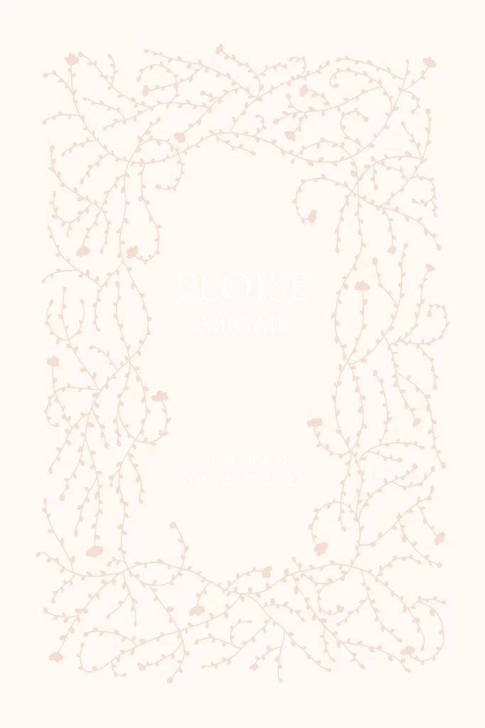 Op zoek naar een prachtig geboortekaartje met een vleugje elegantie? Het geboortekaart bloemen rand is een perfecte keuze voor ouders die op zoek zijn naar een uniek en stijlvol ontwerp. Met een prachtige illustratie van een bloemenslinger en subtiele foliedruk, straalt dit kaartje klasse en verfijning uit. De combinatie van de botanische elementen, zoals de bloemen en de krans, met de glinsterende foliedruk in koper of rosegoud maakt dit kaartje een ware eyecatcher. Het geboortekaart bloemen rand is perfect voor ouders die houden van een klassiek en romantisch ontwerp. De pastelkleuren en de lijntekening geven het kaartje een zachte en stijlvolle uitstraling, terwijl de geometrische elementen zorgen voor een eigentijdse touch. Of je nu op zoek bent naar een kaartje met een vleugje roze, beige of brons, de mogelijkheden zijn eindeloos. Met tags als 'stijlvol', 'romantisch' en 'trouwkaart' is dit geboortekaartje ook perfect te gebruiken voor andere gelegenheden, zoals een huwelijk of jubileum.