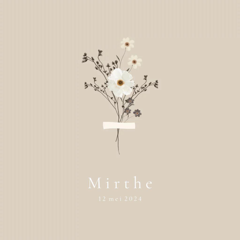 Een lief geboortekaartje met foliedruk en bloemen. Kleur van de achtergrond en tekst kan gewijzigd worden.