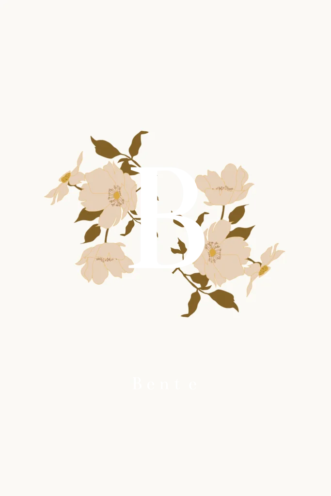 Een heel mooi geboortekaartje met bloemen en de eerste letter van de naam in foliedruk.