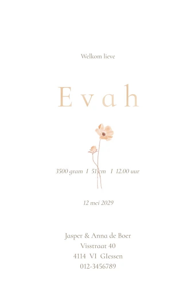Een mooi geboortekaartje met geschilderde bloemen. Dit kaartje kan je ook gebruiken als geboortebloem kaartje. Deze bloem Cosmea staat voor de maand oktober.