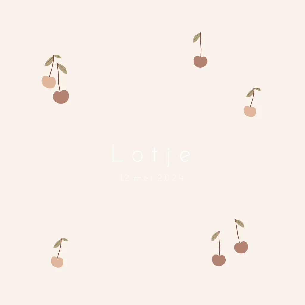 Een heel lief geboortekaartjes met kersjes. De kleuren kunnen worden aangepast.