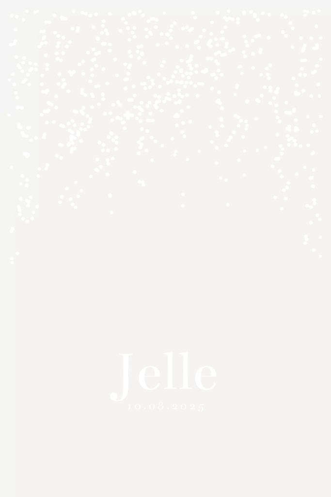 Geboortekaartje met stipjes regen, met op de voorkant van het kaartje foliedruk.