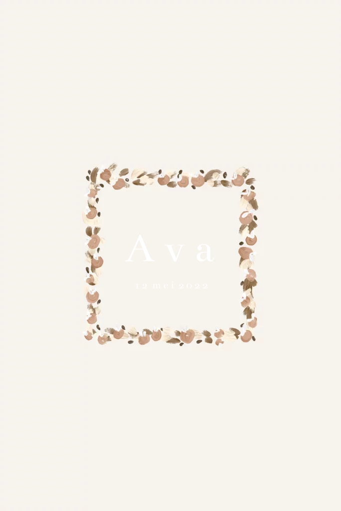 Een lief geboortekaartjes roze tinten met bloesem en fruit. Kleuren van de tekst en de achtergrond kleur kunnen gewijzigd worden.