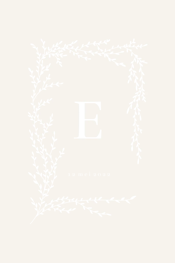 Een mooie chique geboortekaartje met ronde hoeken en de takjes en letters met foliedruk. Kleuren kunnen gewijzigd worden.