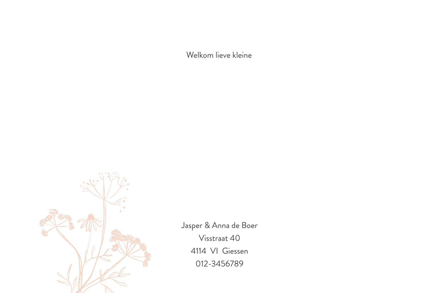 Een mooi fris geboortekaartje met veldbloemen en rosegoud folie.
