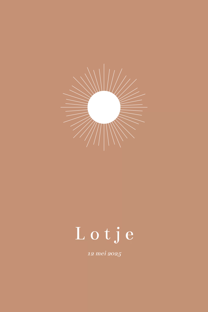 Een mooi minimalistisch geboortekaartje met goudfolie, met een zon.