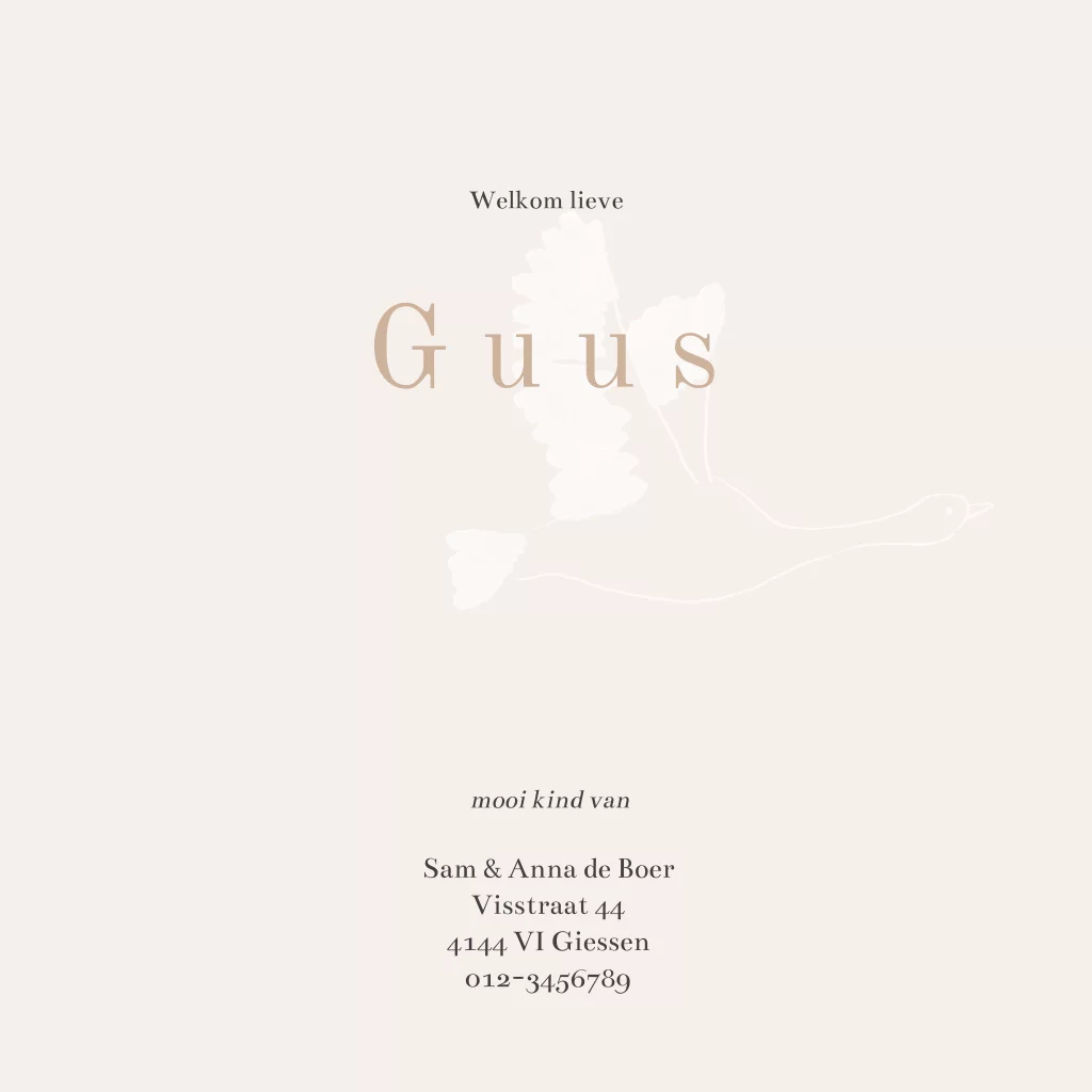 Een lief eenvoudig geboortekaartje met tekening van een zwaan / vogel. Kleuren kunnen gewijzigd worden.