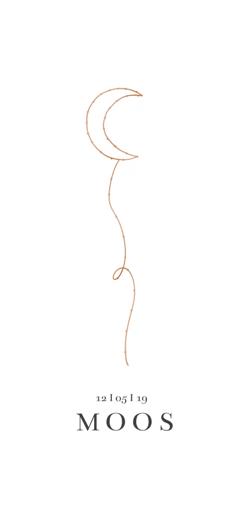 Een hip en trendy geboortekaartje met een slinger maan en sterretjes. De tekst en kleuren kunnen worden aangepast!