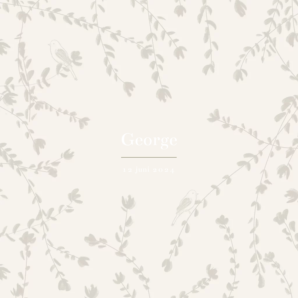 Een lief geboortekaartjes in natuur tinten met takjes en vogeltjes. Kleuren kunnen gewijzigd worden.