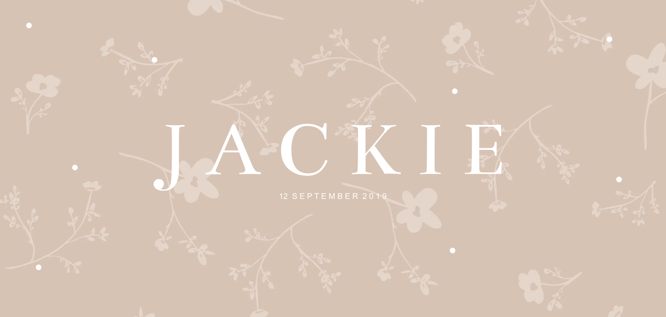 Een mooi eenvoudig liggend geboortekaartje met de naam in goudfolie en bloemetjes.