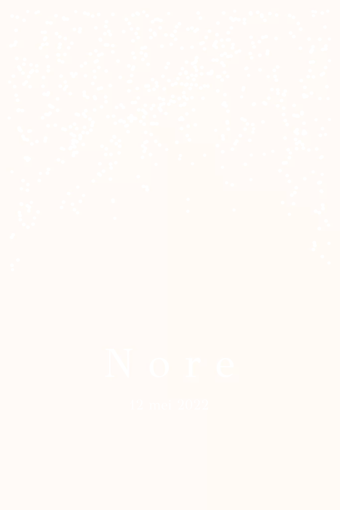 Een heel vrolijk geboortekaartje met een stipjes regen. De naam en de stipjes worden gedrukt in rosé goud folie. Dit kan je wijzigen naar een andere kleur.