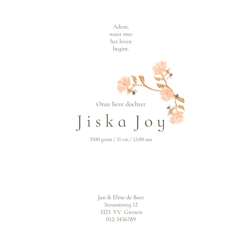 Geboortekaartje vierkant folie retro bloemen