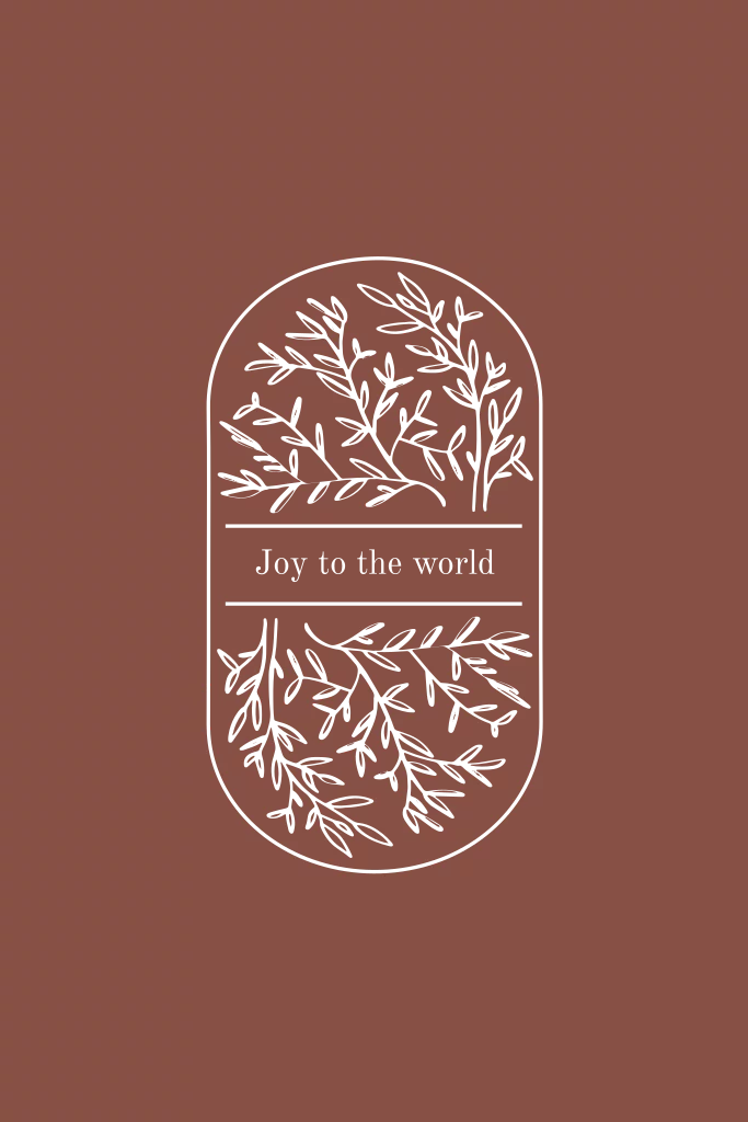 Een minimalistische kerstkaart met blaadjes en een cirkel in rosegoudfolie. Tekst en kleuren kunnen gewijzigd worden.