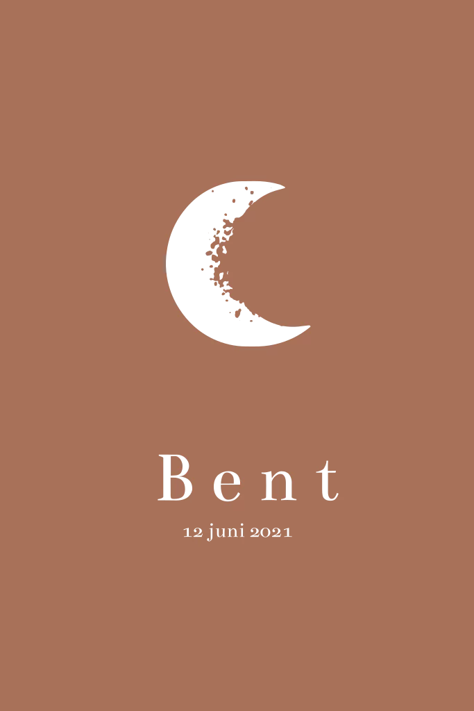 Een heel mooi folie geboortekaartje met een maan. In aarde tinten.