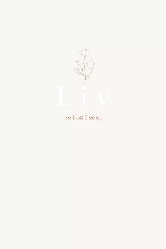 Een heel mooi folie geboortekaartje met de een lijntekening van een bloem. Heel eenvoudig en mooi.