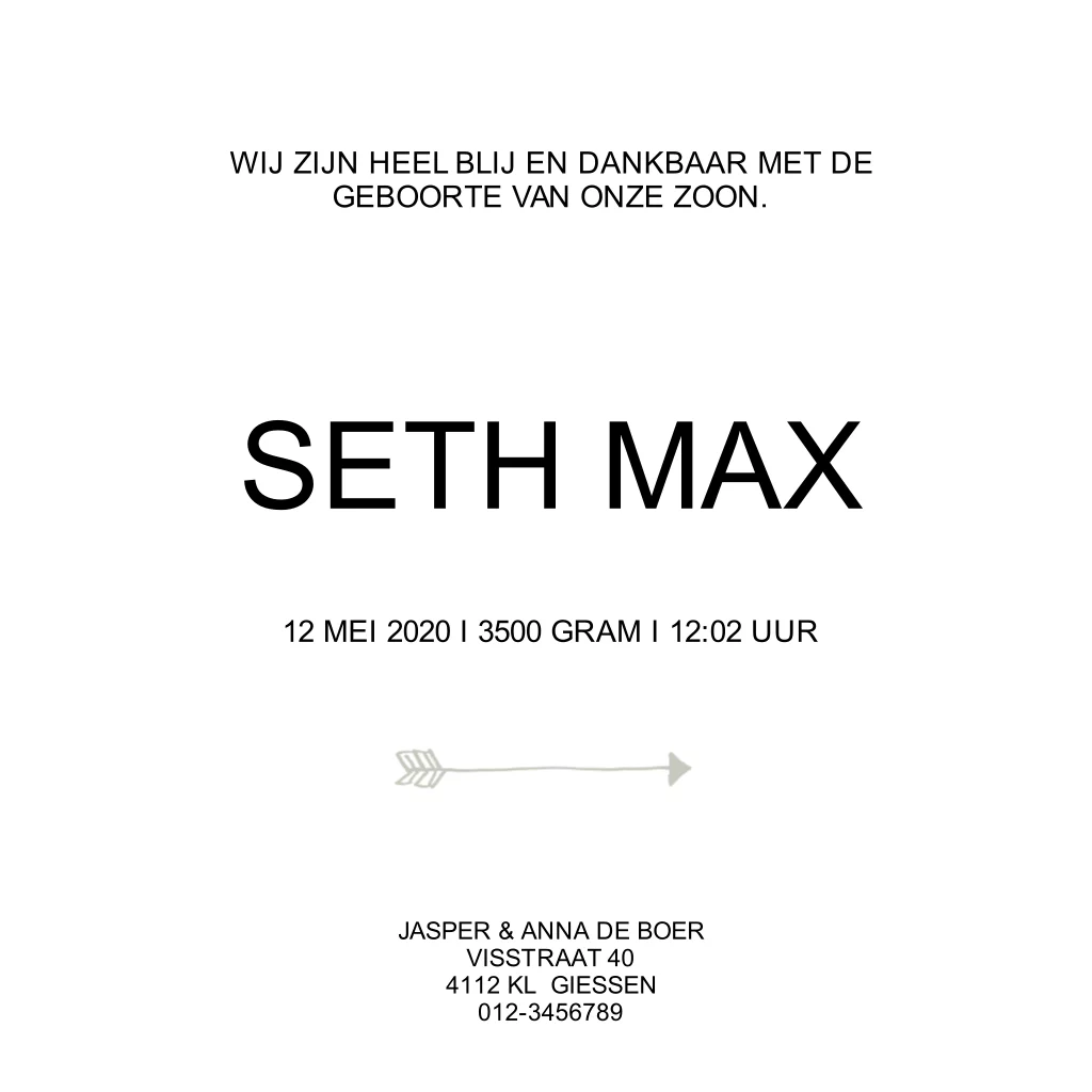 Een stoer geboortekaartje met een de mogelijkheid voor een eigen foto. In de kleuren grijs en zwart. Kleuren kunnen gewijzigd worden. Heb je vragen? mail ons gerust.