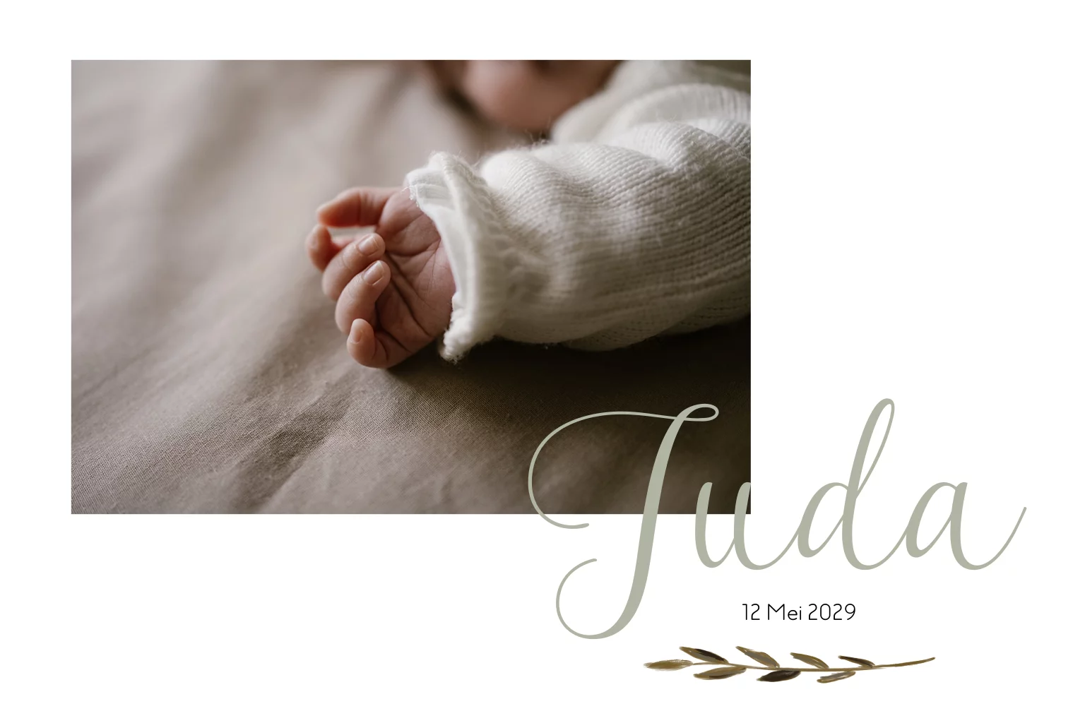 Een lief en rustig geboortekaartje met de mogelijkheid voor een eigen foto. De tekst en kleuren kunnen worden aangepast.
