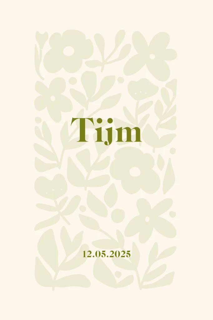 Een mooi geboortekaartje met bloemetjes. De achtergrond en teksten kunnen gewijzigd worden van kleur.