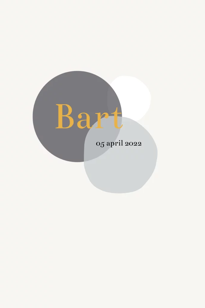 Een heel mooi geboortekaartje. Op de voor en achterkant staan cirkels die in alle kleuren gewijzigd kunnen worden.