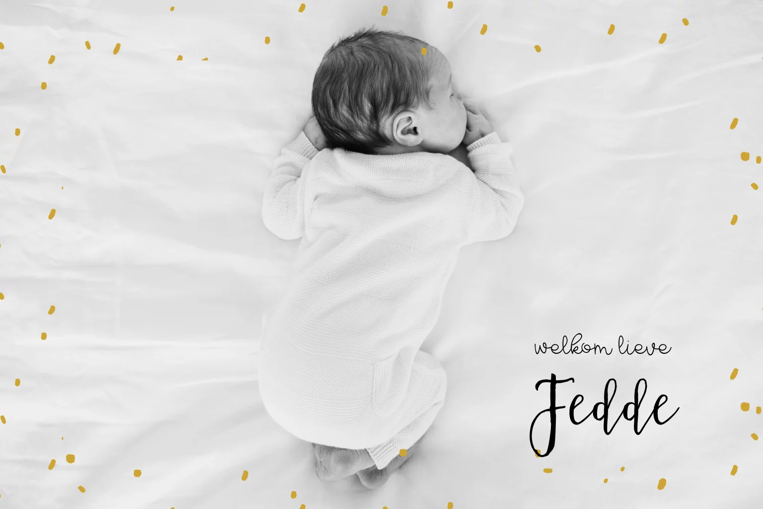 Een eenvoudig mooi lief geboortekaartje met confetti stippen in het oker. De stippen zijn om te kleuren naar elk gewenste kleur. De tekst en kleuren van de tekst kunnen worden aangepast!