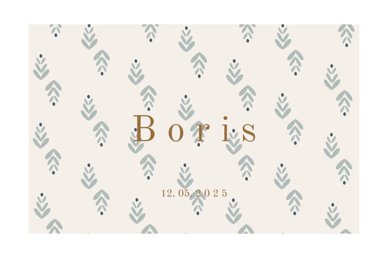 Een leuk vrolijk geboortekaartje hartjes boom in blauwe tinten. Van dit patroon is er ook behang te verkrijgen bij www.bibelotte.nl