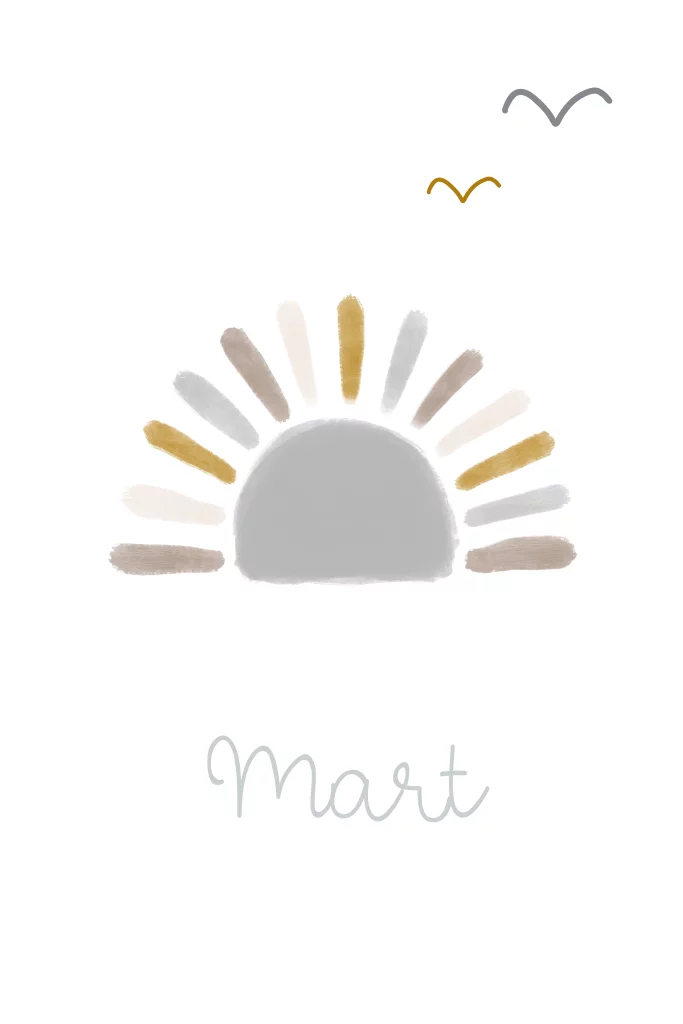 Een lief eenvoudig kaartje in naturel kleuren met een watercolor zon en vogels. De achtergrond kan ook qua kleur gewijzigd worden.