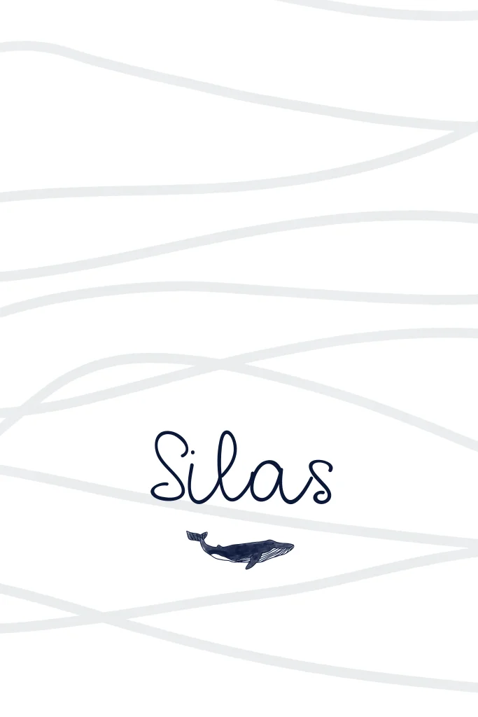Een lief stoer geboortekaartje met een streep golfjes en een watercolor walvis. Heel het kaartje kan van kleur gewijzigd worden.