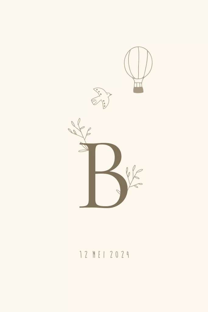 Een mooi eenvoudig geboortekaartje met lijn illustraties in naturel kleuren. Kleuren en tekst kunnen gewijzigd worden.