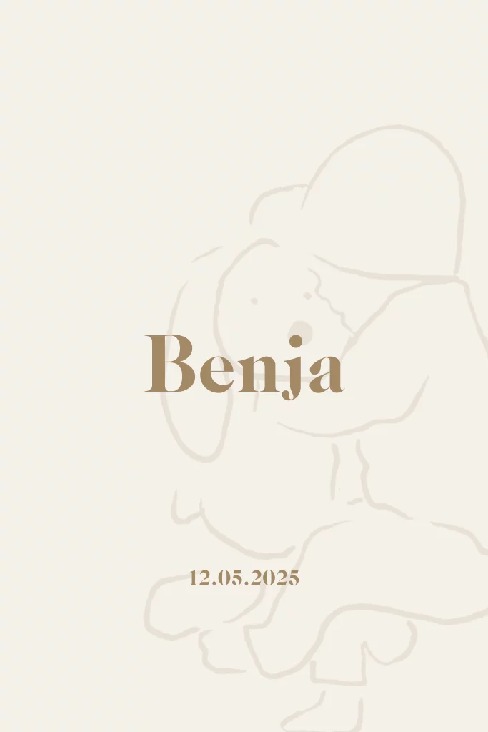 Een mooi geboortekaartje met een lijntekening. De achtergrond, tekening en teksten kunnen gewijzigd worden van kleur.