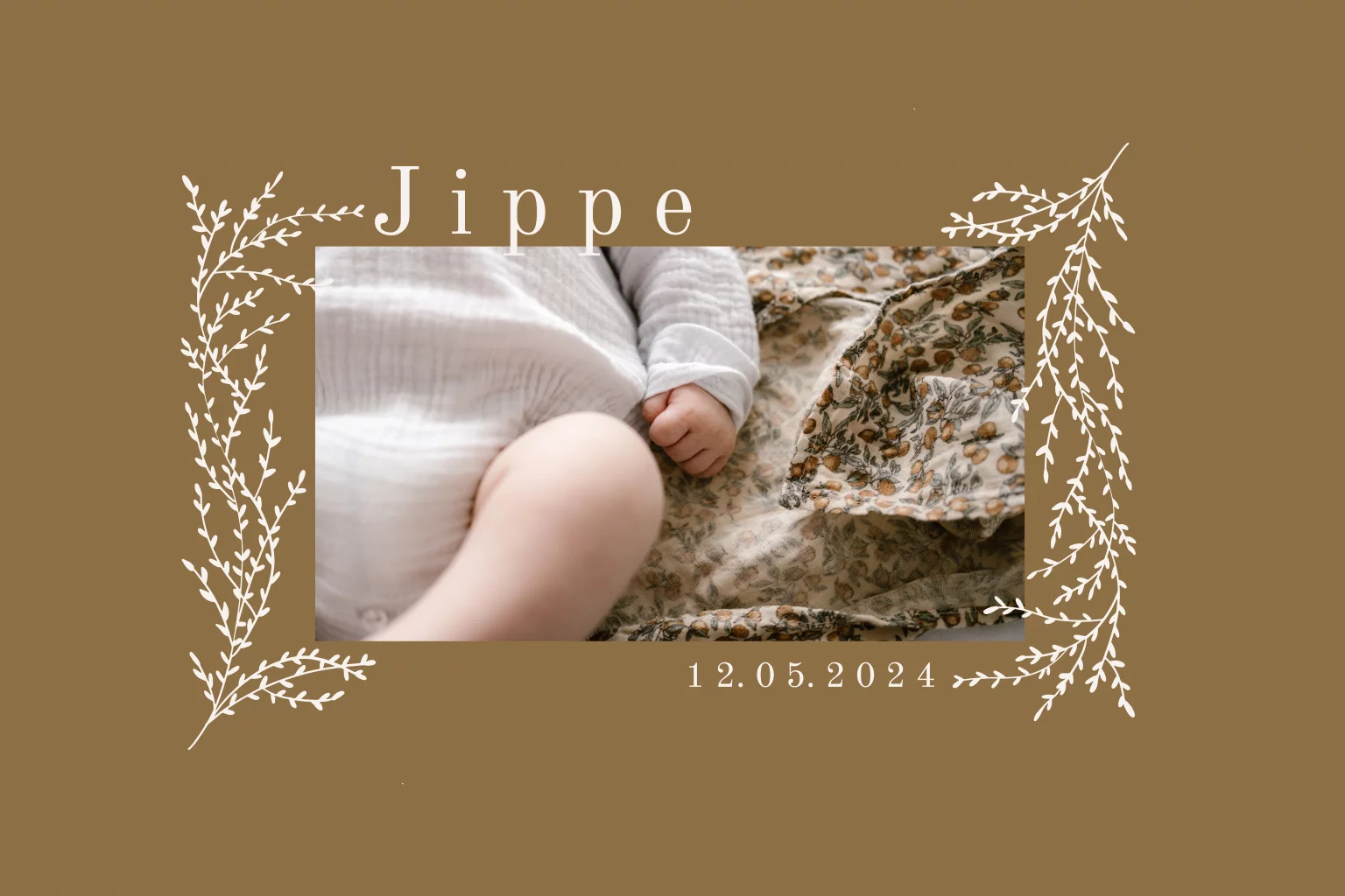 Geboortekaartje met foto takjes ronde hoeken